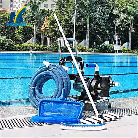Basic set of tools for hands-on cleaning (Telescopic Pole, Skimmer Net, Wall Brush, Vacuum Head/Hose).