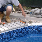 The capstone or edging material placed around the pool perimeter for finishing and safety.